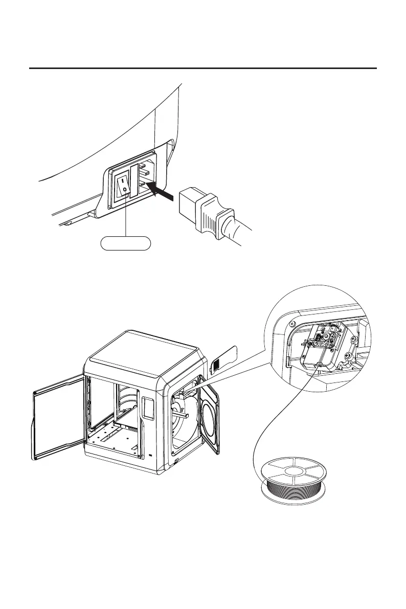 2.安装丝料:打开右侧耗材门,将丝料插入进丝口,推入送丝轮内,感受到一定阻力即可。
