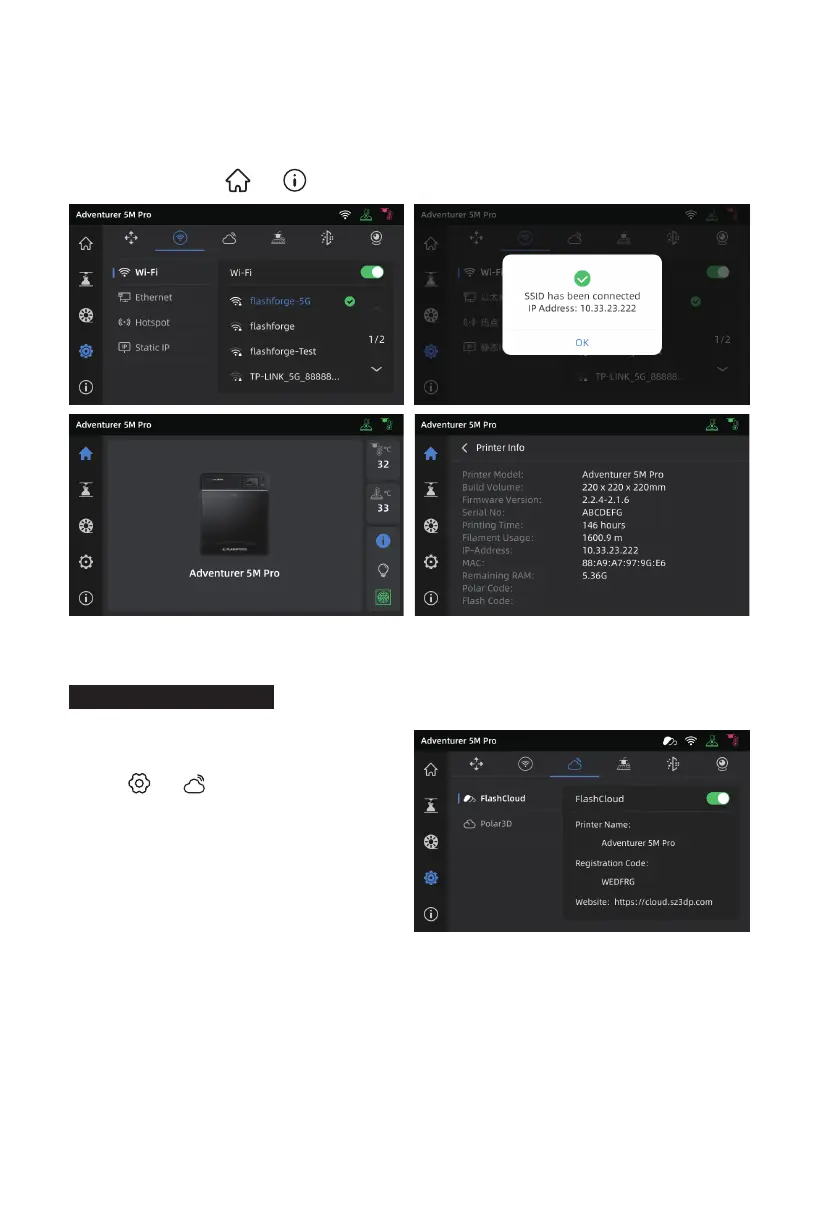 registration code) and name the printer. After clicking [OK], the information will appear on the