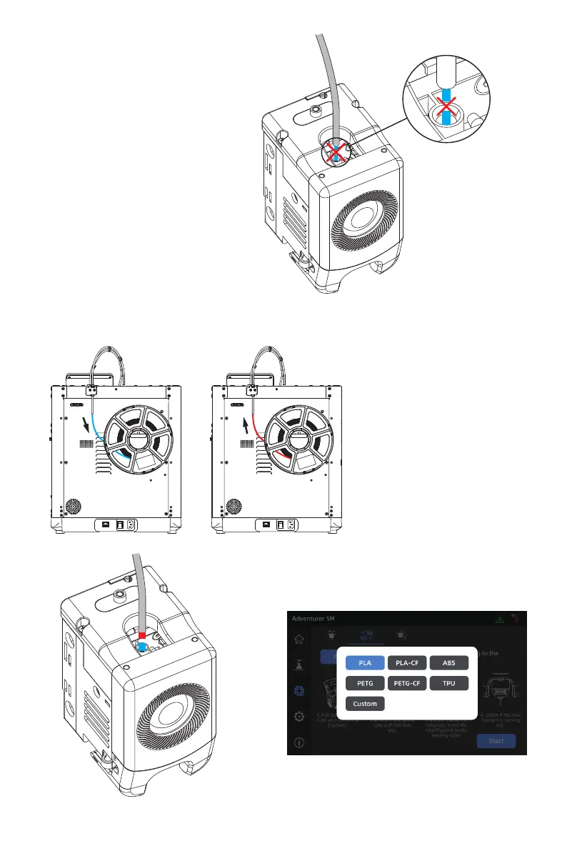 3. Pull out the cut filament, and insert the new filament into the filament guide tube. If the