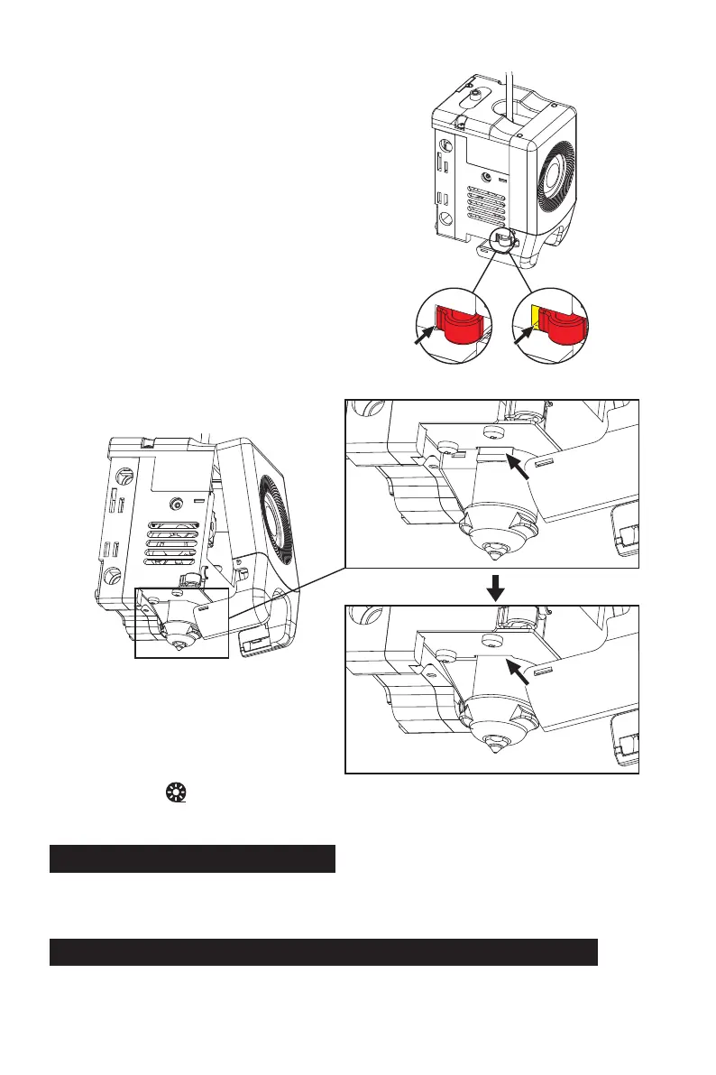 b. 检查喷嘴卡槽位与喷头下部是否齐平(如视线