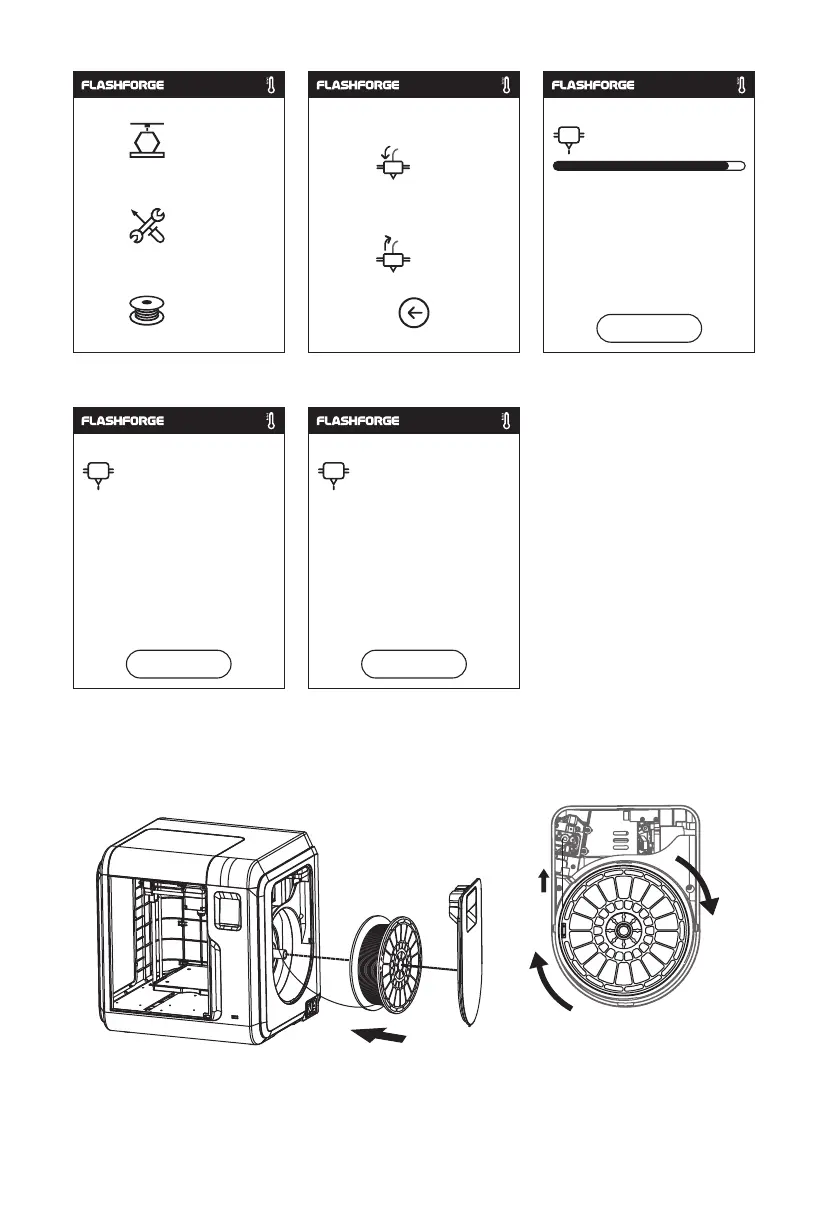 3. 喷嘴出丝,确认进丝完成,将料盘置于料盘架上,封闭料盘盖。