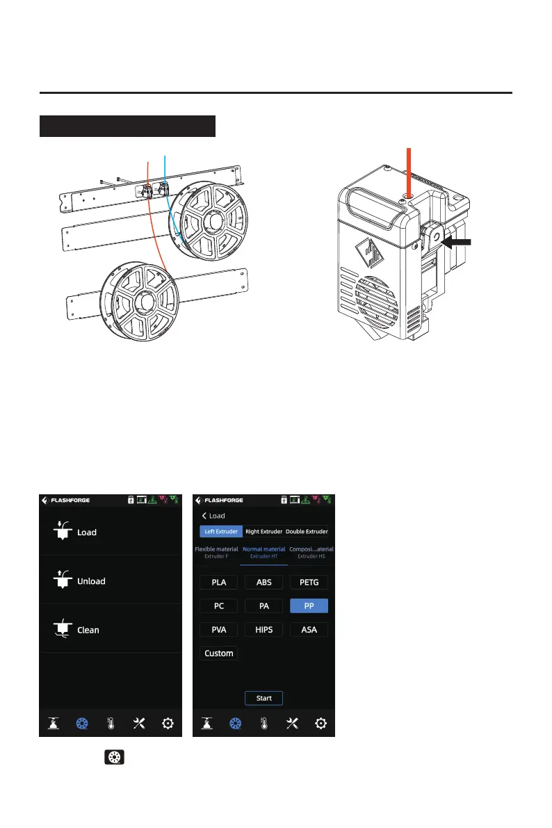 extruder, start filament feeding, and operate following the screen prompts.