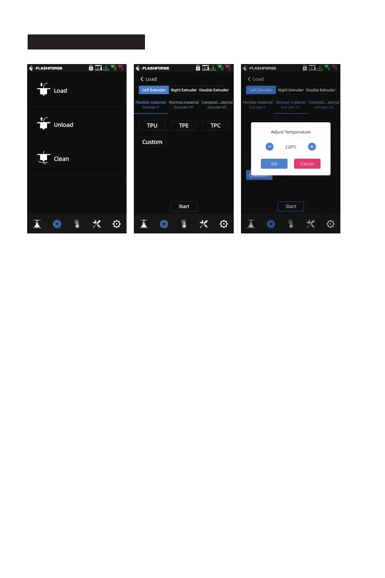 The filament screen includes: [Load], [Unload] and [Clean].