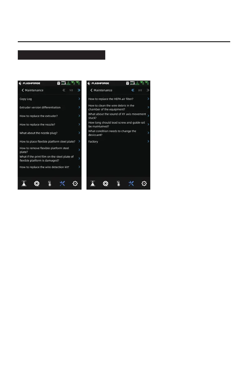 Flashforge CN/EN-A01 - Maintenance; Maintenance Screen