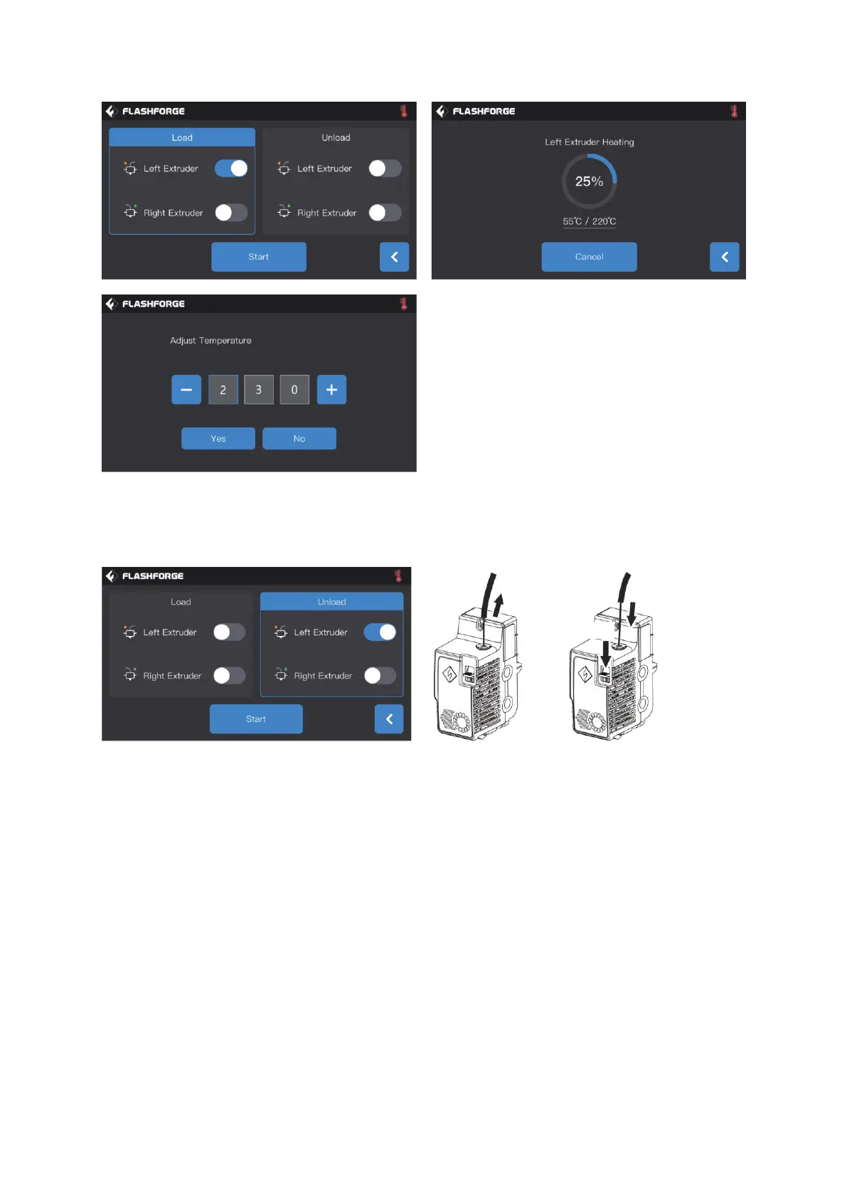 Vyjímání vláken: Po dokončení ohřevu extrudéru stiskněte přítlačnou desku vlákna,