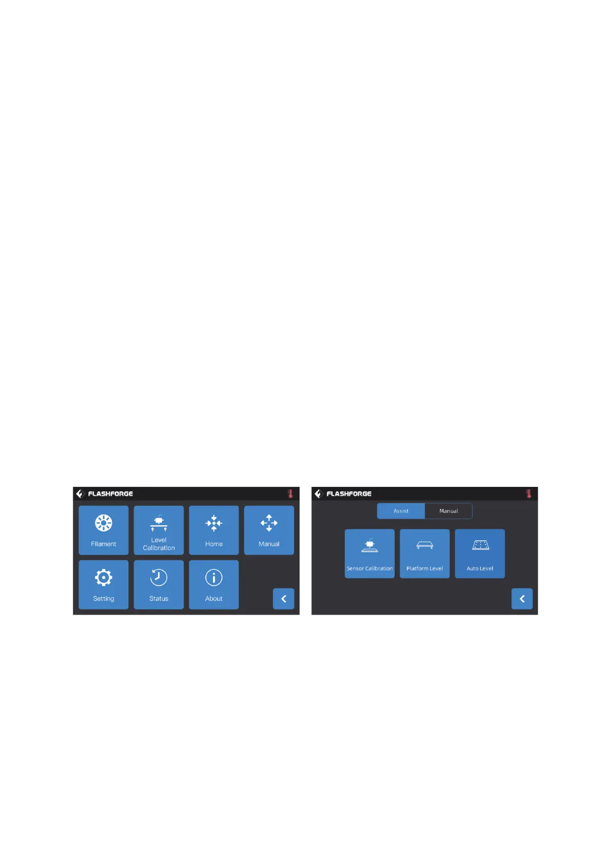 Režim ručního vyrovnávání: Proveďte postupně nivelaci plošiny, kalibraci osy Z a