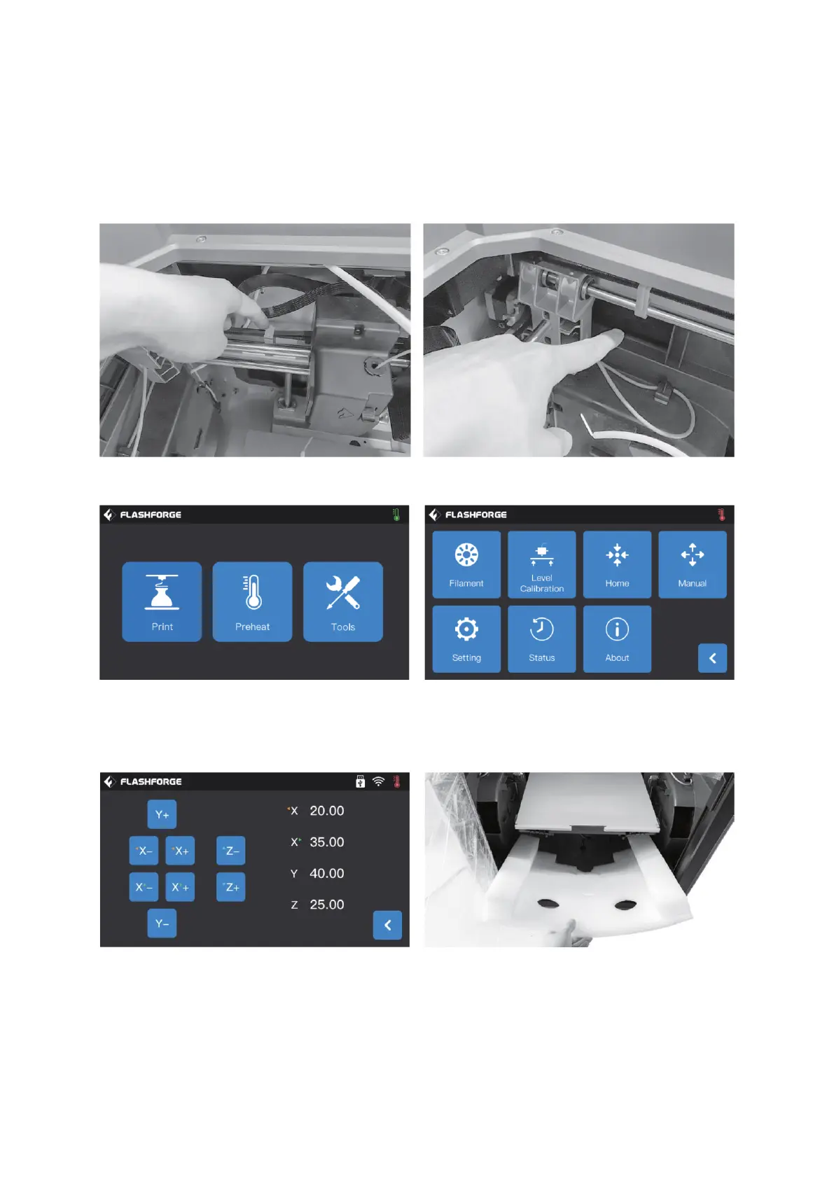 [Manuell], um nach dem Einschalten des 3D-Druckers die manuelle