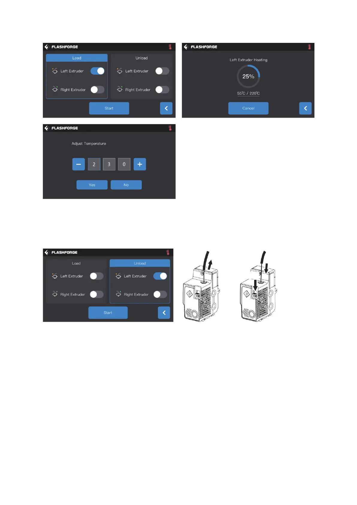 tube, and pull out the filament upward quickly and then filament unloading is