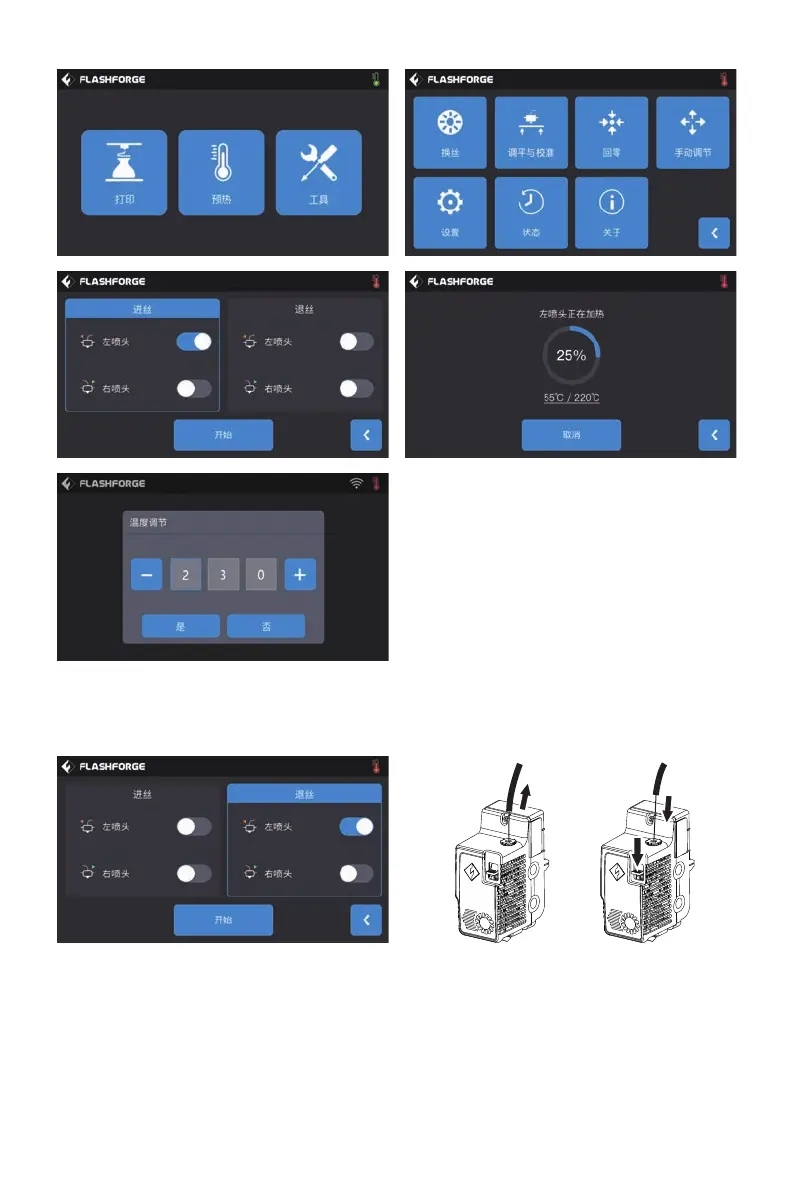 8. 进丝操作:点击屏幕中的【工具】-【换丝】按钮,根据材料所需温度值设置合理加热温度;根