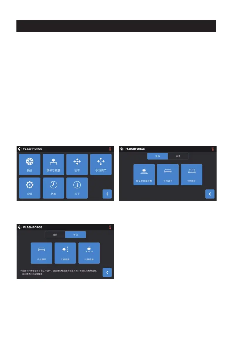 3. 喷头传感器校准已在出厂前完成设定,无需再操作;点击平台调平,按照屏幕指示进行操作;