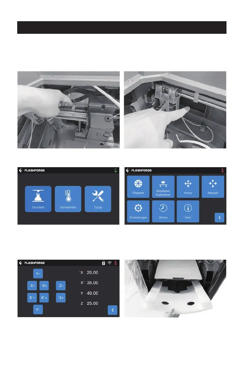 6. Halten Sie [Z-] angetippt, bis sich die Konstruktionsplattform anhebt. Nehmen Sie