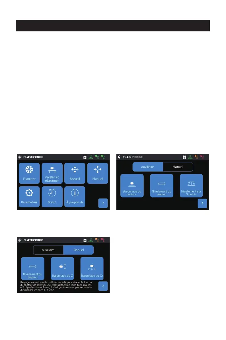 Mode de nivellement manuel: Exécutez successivement le nivellement de la plateforme,