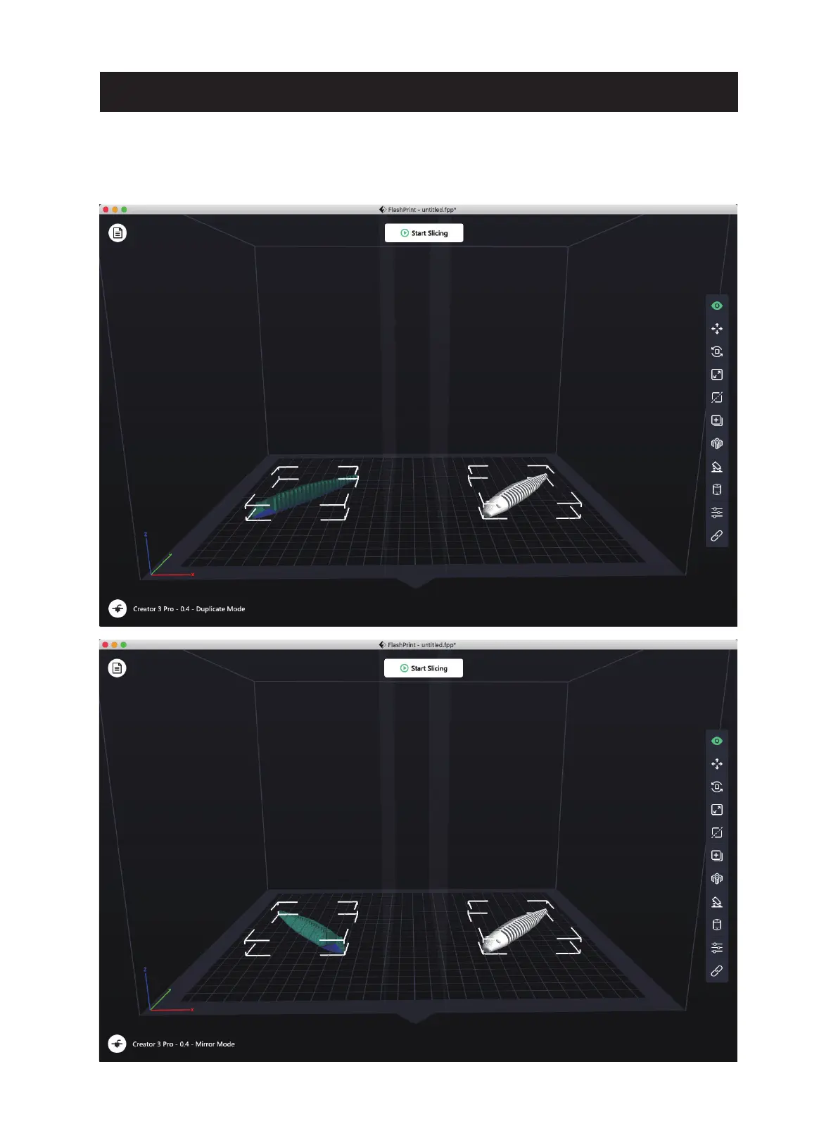 left and right extruders will print the models at the same time. (Note that when in the mirror/duplicate mode,