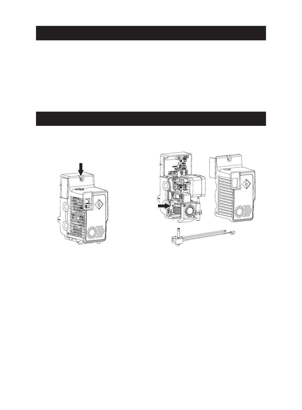 3. 换上新的喷嘴组件。请务必将喷嘴组件顶到底为止,不可以存在安装间隙。拧紧对应螺丝;将线束插入到喷头电路板中;盖上外
