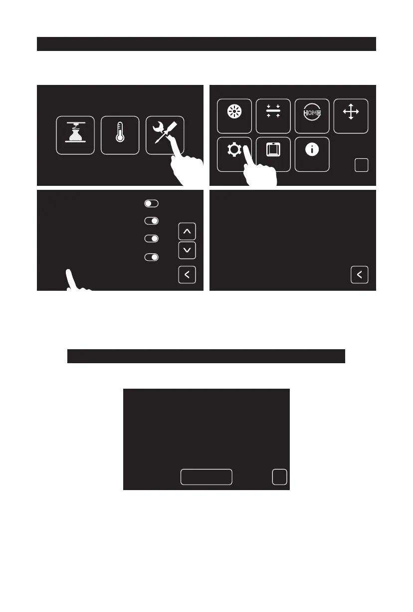 1. 点击触摸屏[Z轴校准],等待喷头和平台Z轴校准。校准过程中,不要中断。