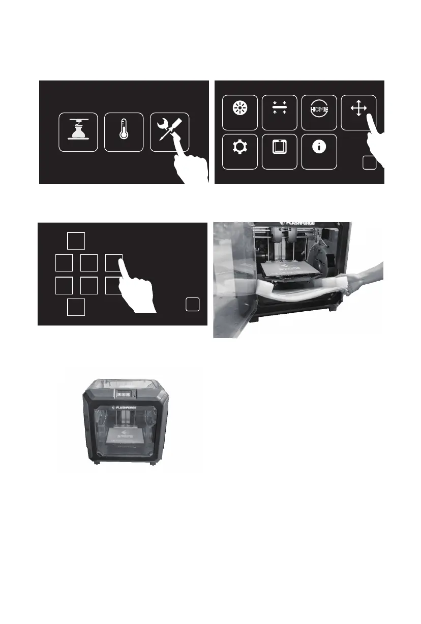12. Tap [Z-] to partially elevate the build plate. 13. Remove bottom foam pieces.