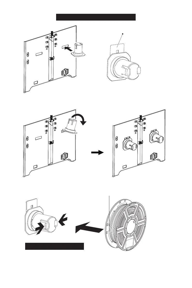 1.将丝盘轴插入端插入打印机背部的丝盘轴插口中。