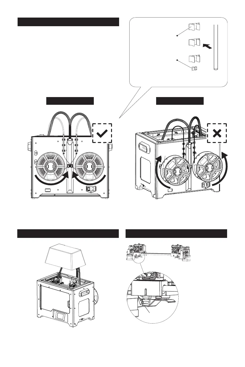 安装耗材时请注意耗材丝盘轴的安装方向。