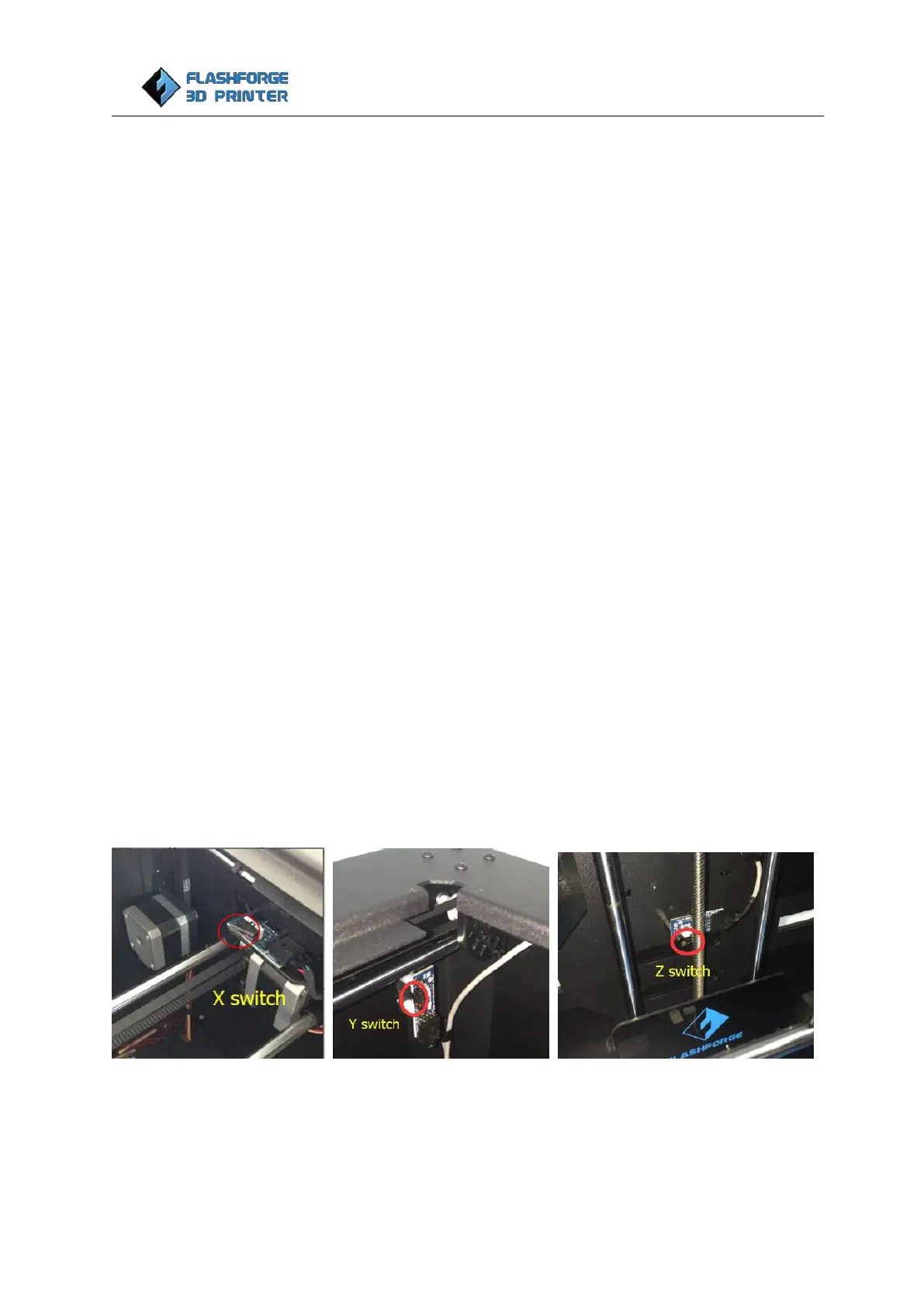 5. Check X, Y, Z end stop switch. Make sure the little metal tabs are all still there. See below pictures for
