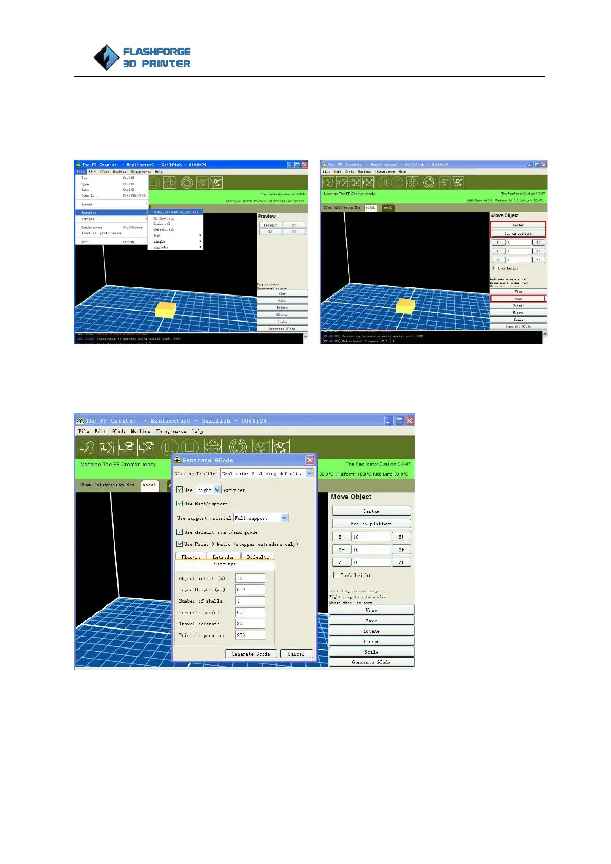 interface click Move > Center and Put on platform so that the sample will be printed on the centre of the