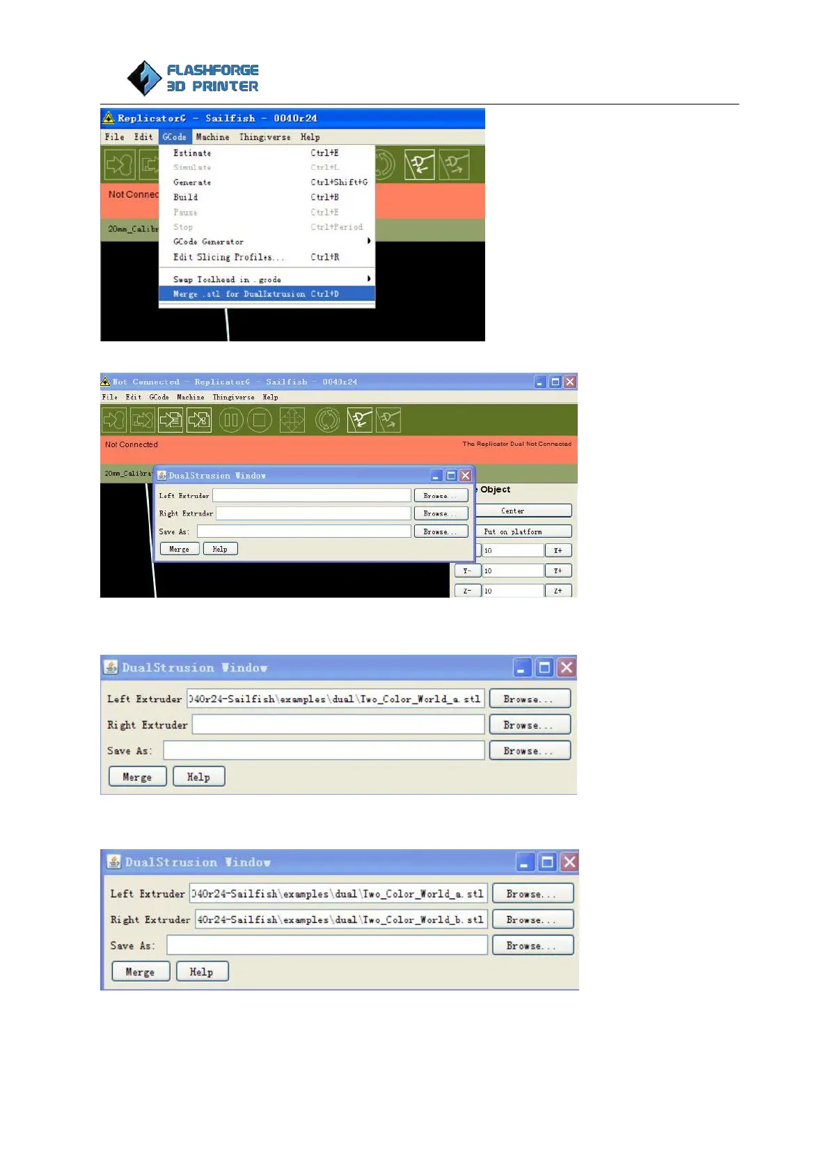 Click browse for left extruder; locate the folder 'examples' found in folder replicatorg-0040r24- Sailfish