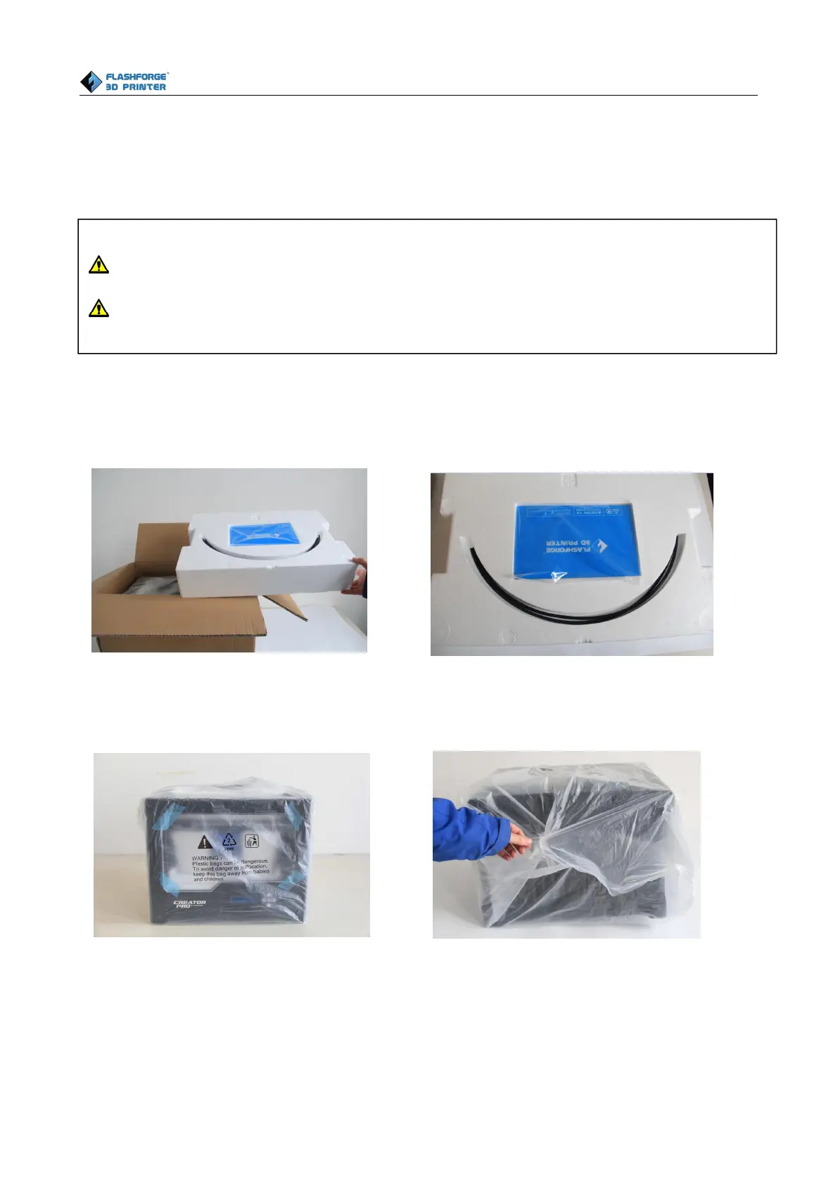 The Creator Pro was carefully packaged at FLASHFORGE manufacturing facility. Please follow