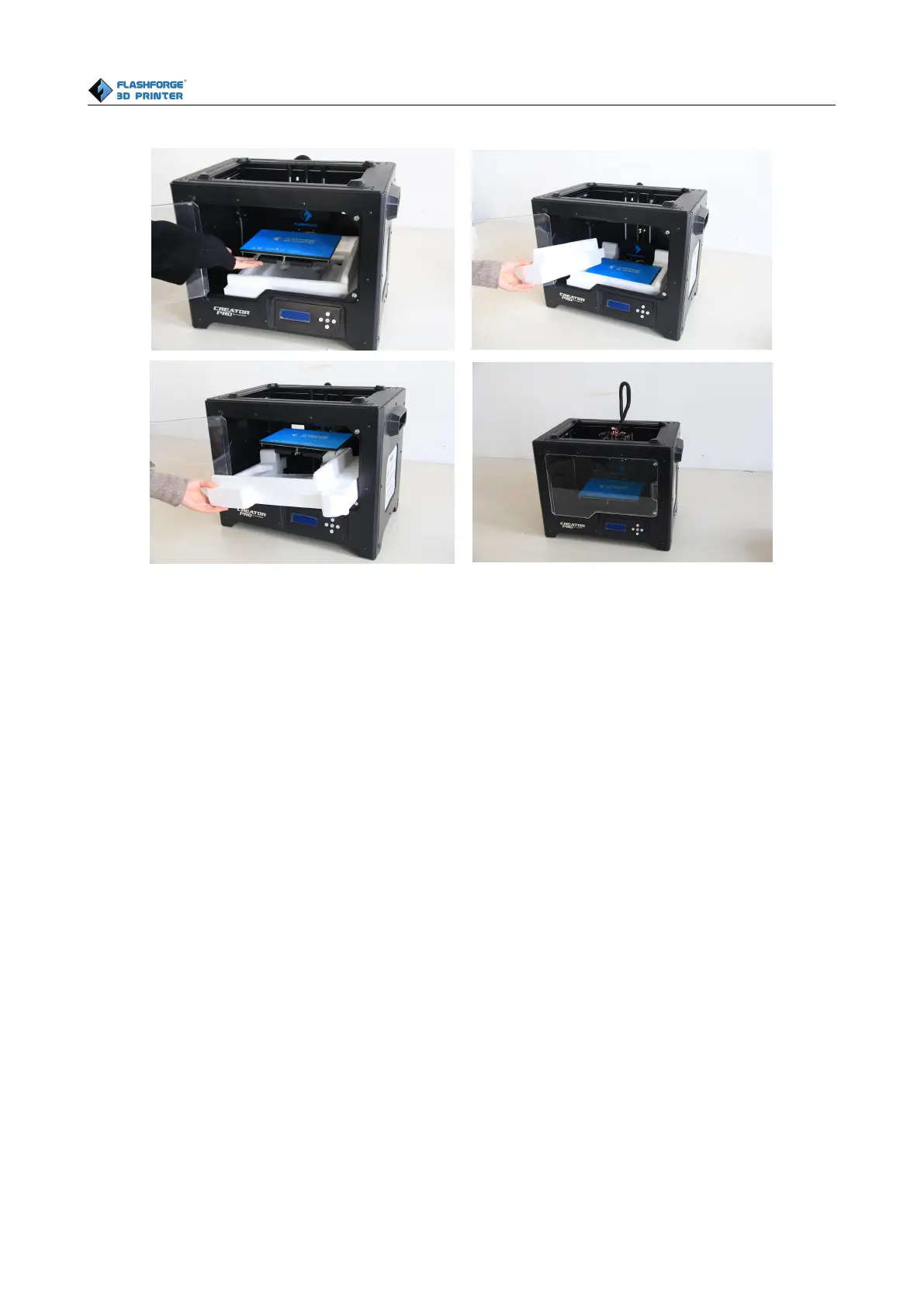 Congratulations! Youve finished the unpacking process. (Tip: Save your Flashforge Creator Pro