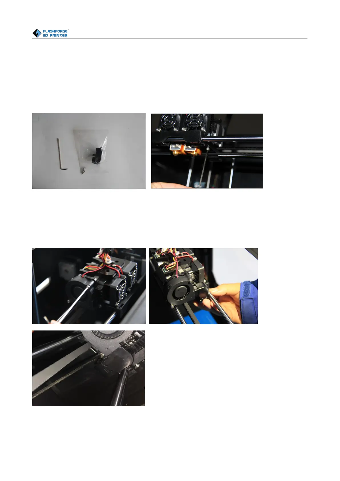by both sides, take it out of the accessory sleeve and position it on the extruder seat with the fan
