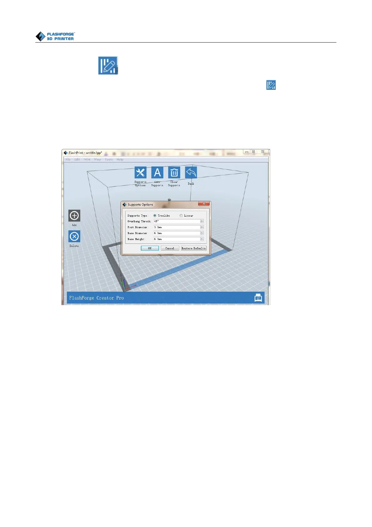 Linear Supports: You can set up linear specifications such as overhang thresh and pillar size.