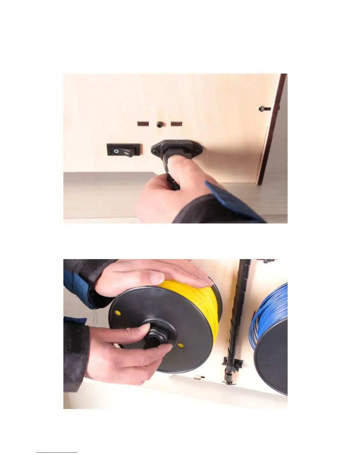 Last, mount filaments on the Spool holders. Mount each spool so that the filament