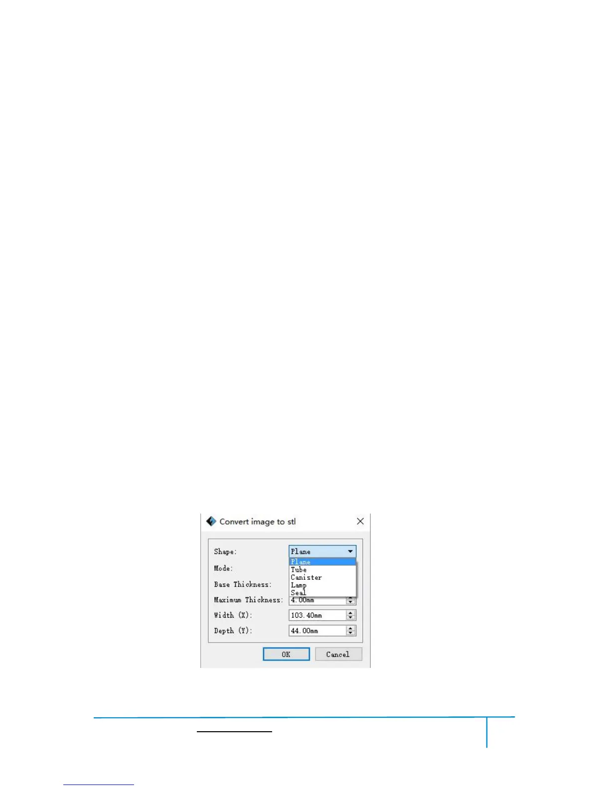 Load a png, jpg, jpeg, bmp picture file into the FlashPrint. And the following dialogue