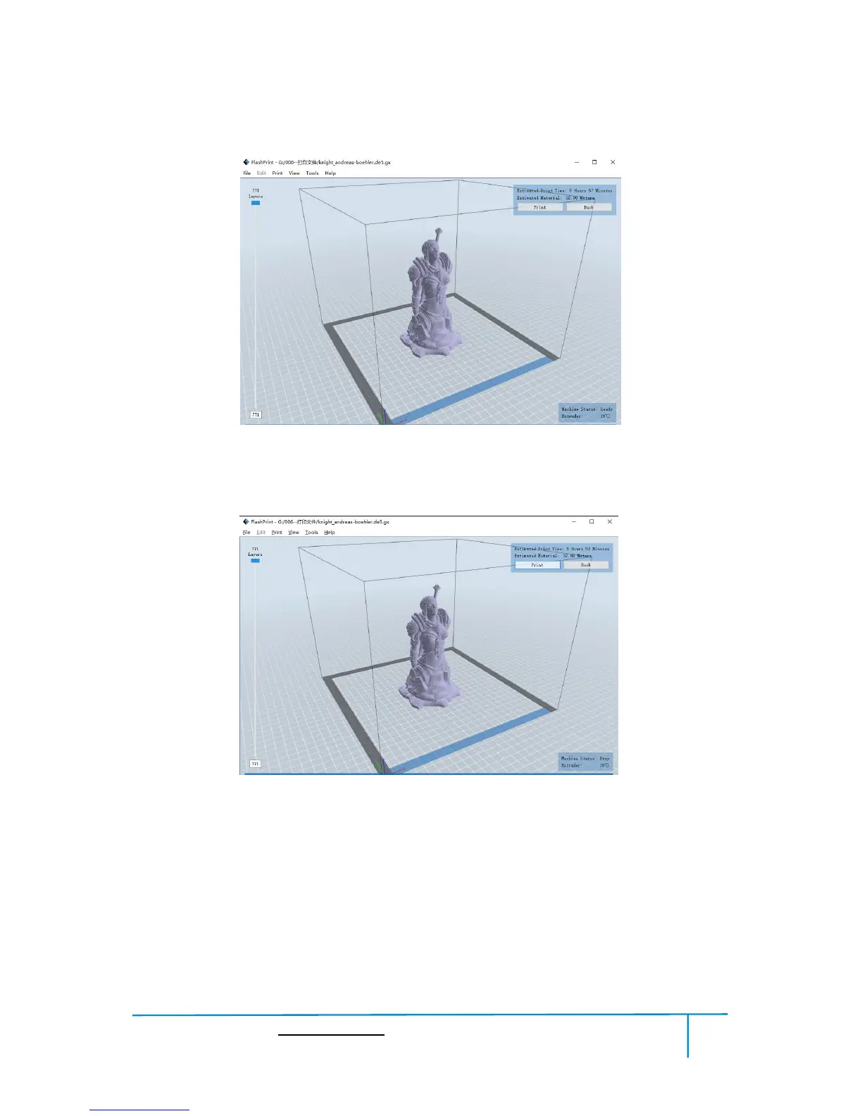 Click the [Print] button, the PC will transfer the Gcode file to the printer.