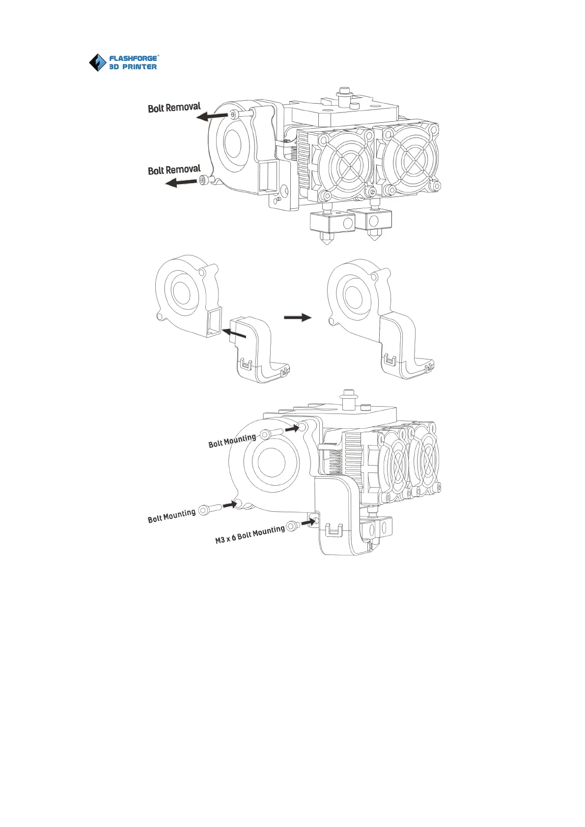 to the turbofan sub-assembly. Screw the two bolts in. Take a M3 * 6 bolt from the