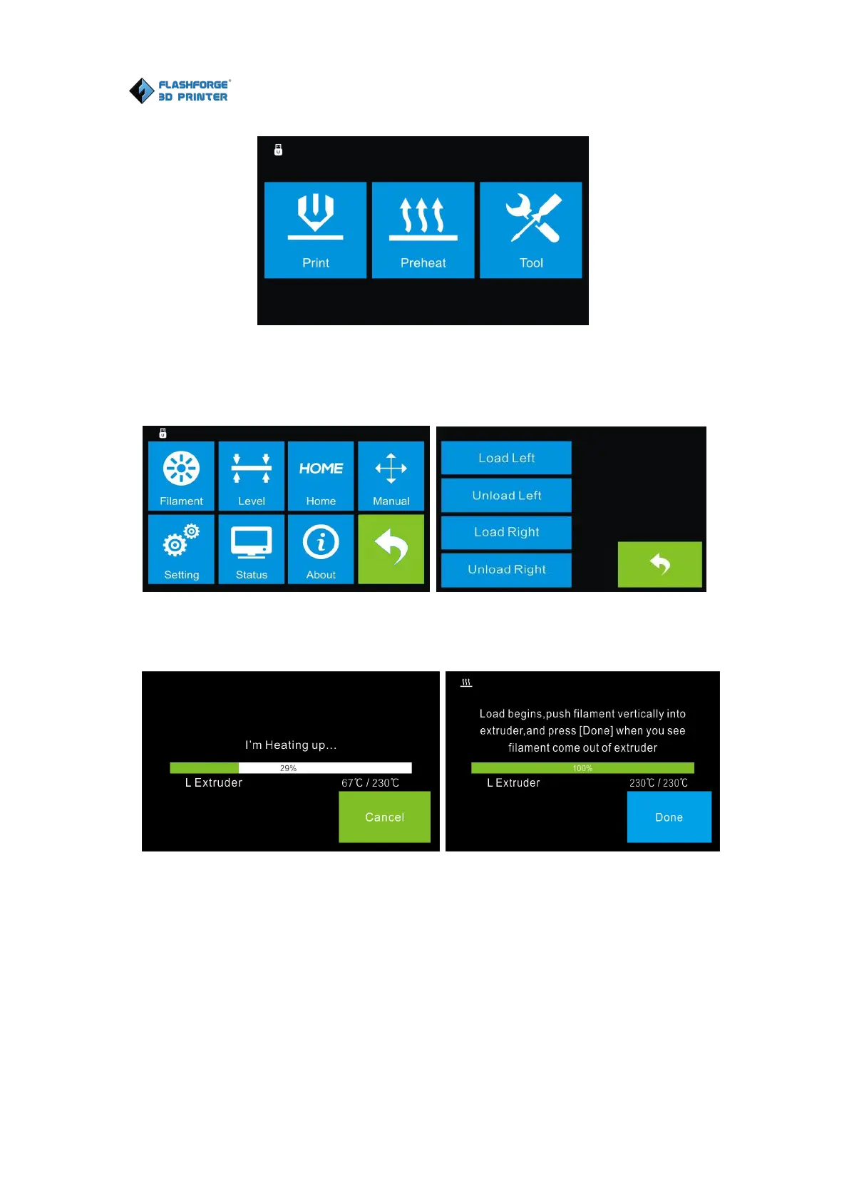 (4-11)Wait for the extruder to heat up to the operating temperature. The extruder will