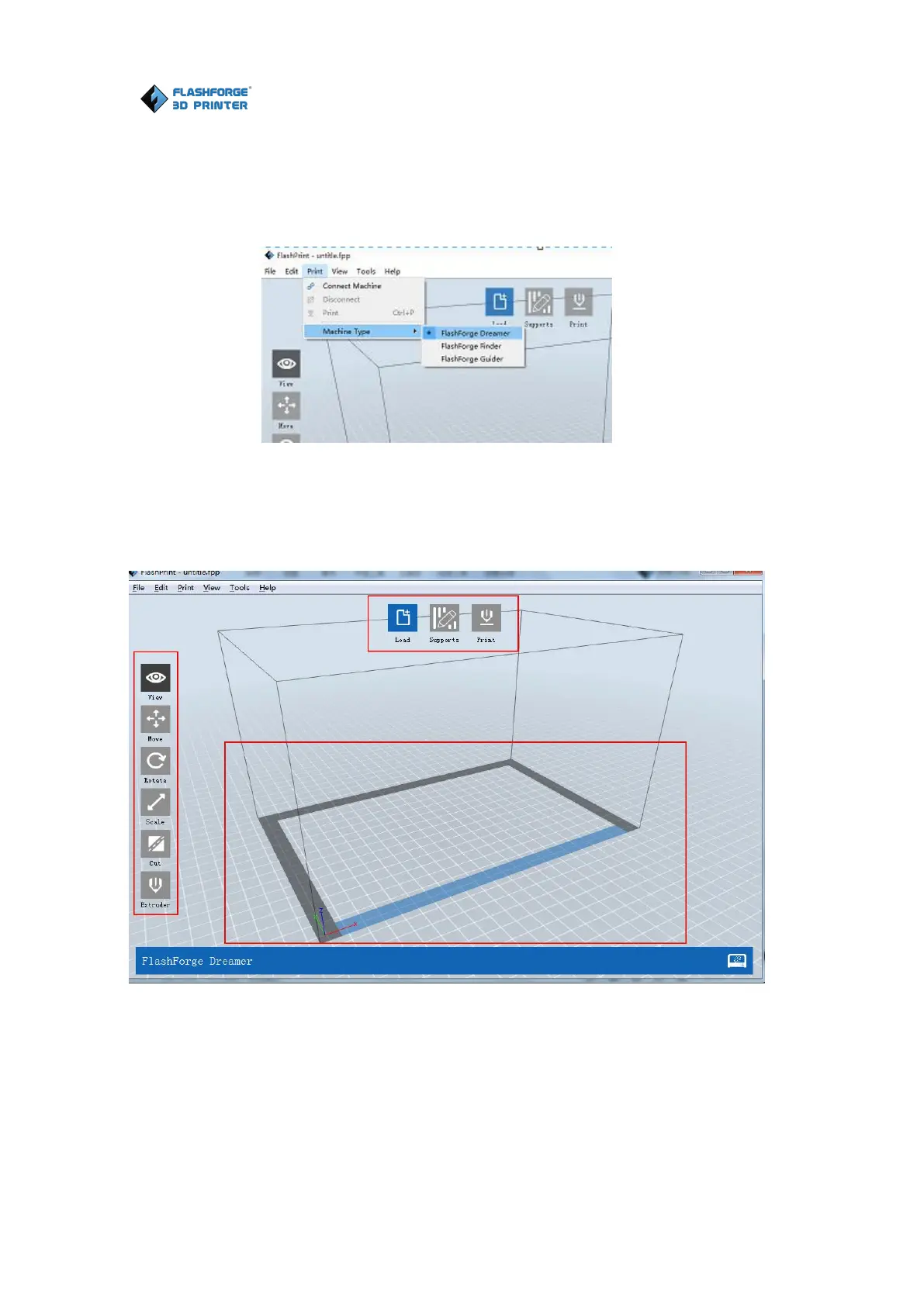 Flashforge DREAMER - FlashPrint Menus and Loading; 6.2.2 FlashPrint Menus