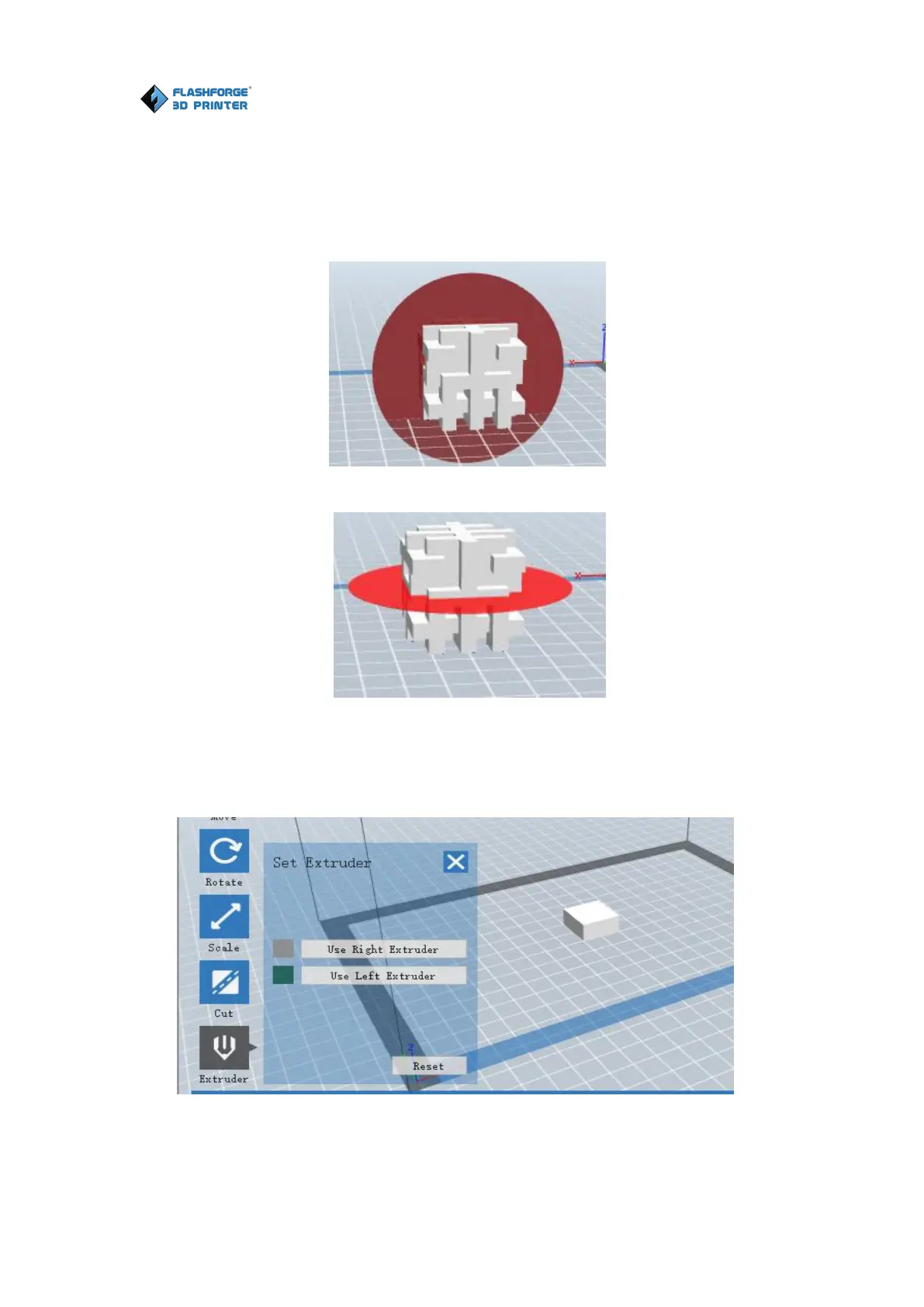 (6-10) Choose L/R extruder to print, pitch on the model, click on twice, then you can