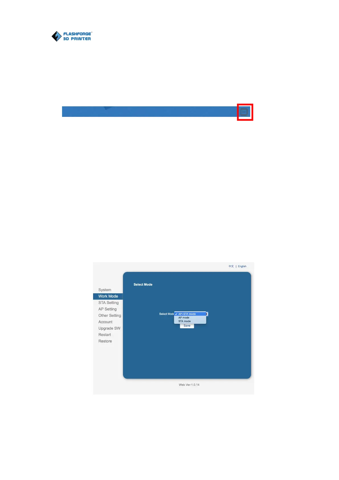 5. Click on [Work Mode] and choose “AP+STA mode” and save it.