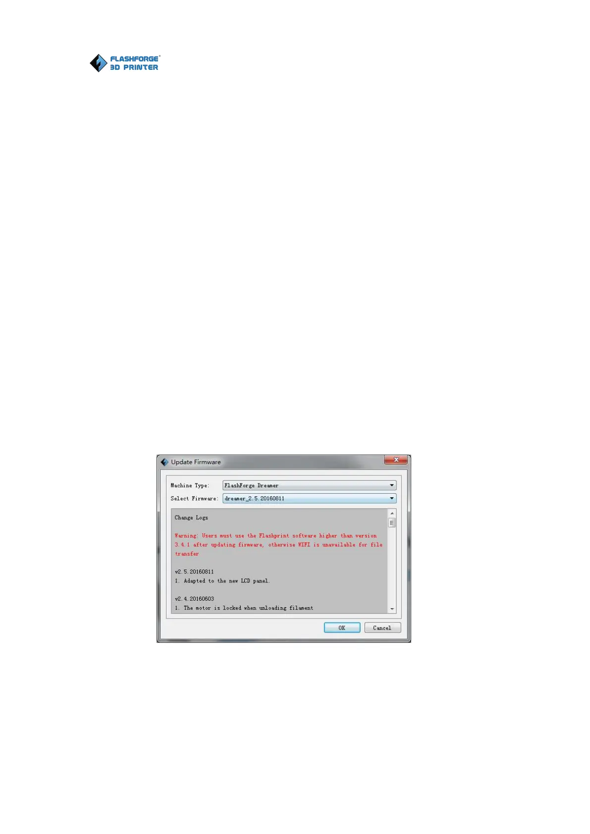 Step 2: Choose corresponding printer type and firmware version and click [OK] in