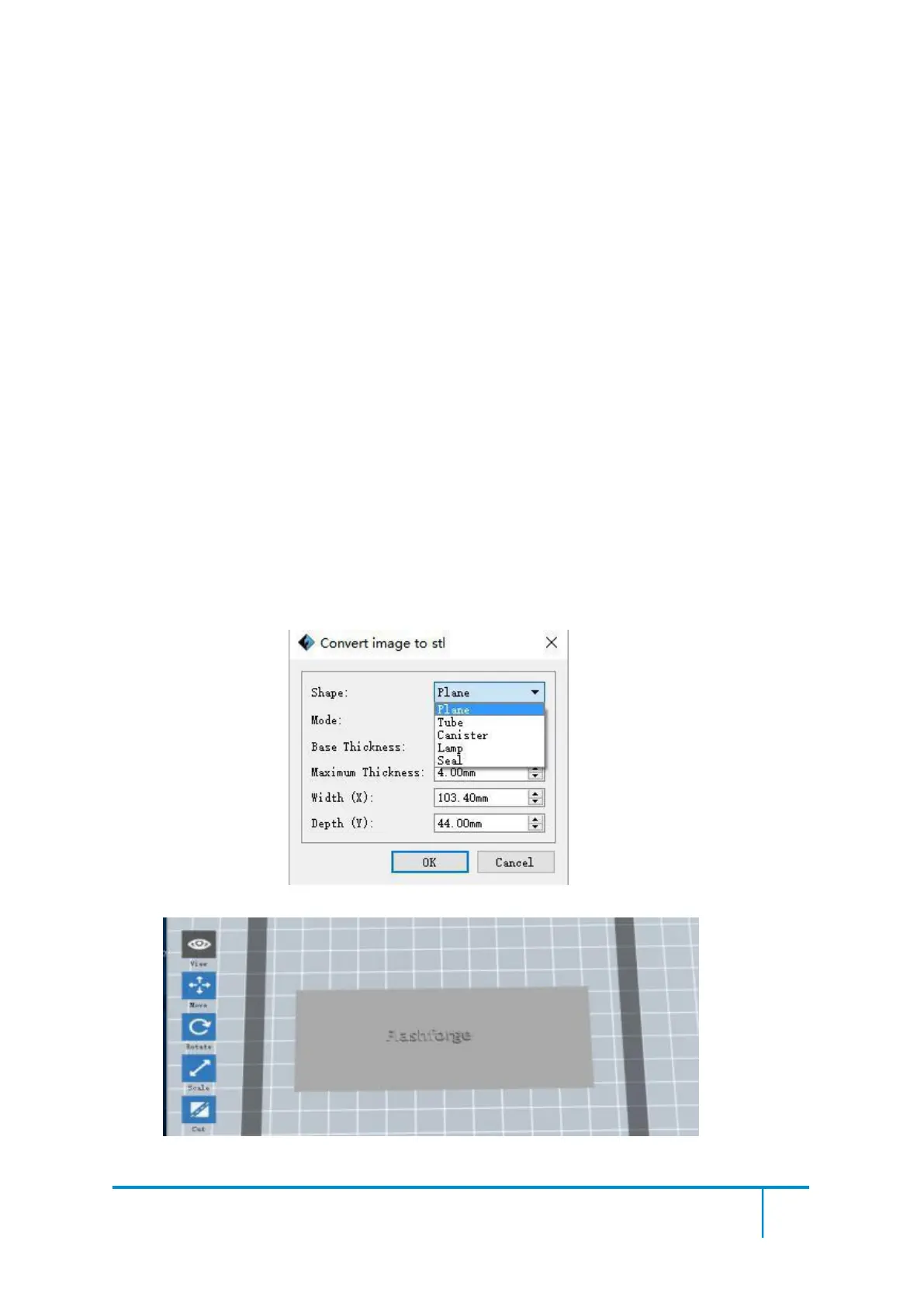 Loading a png, jpg, jpeg, bmp picture file into the FlashPrint. And the following