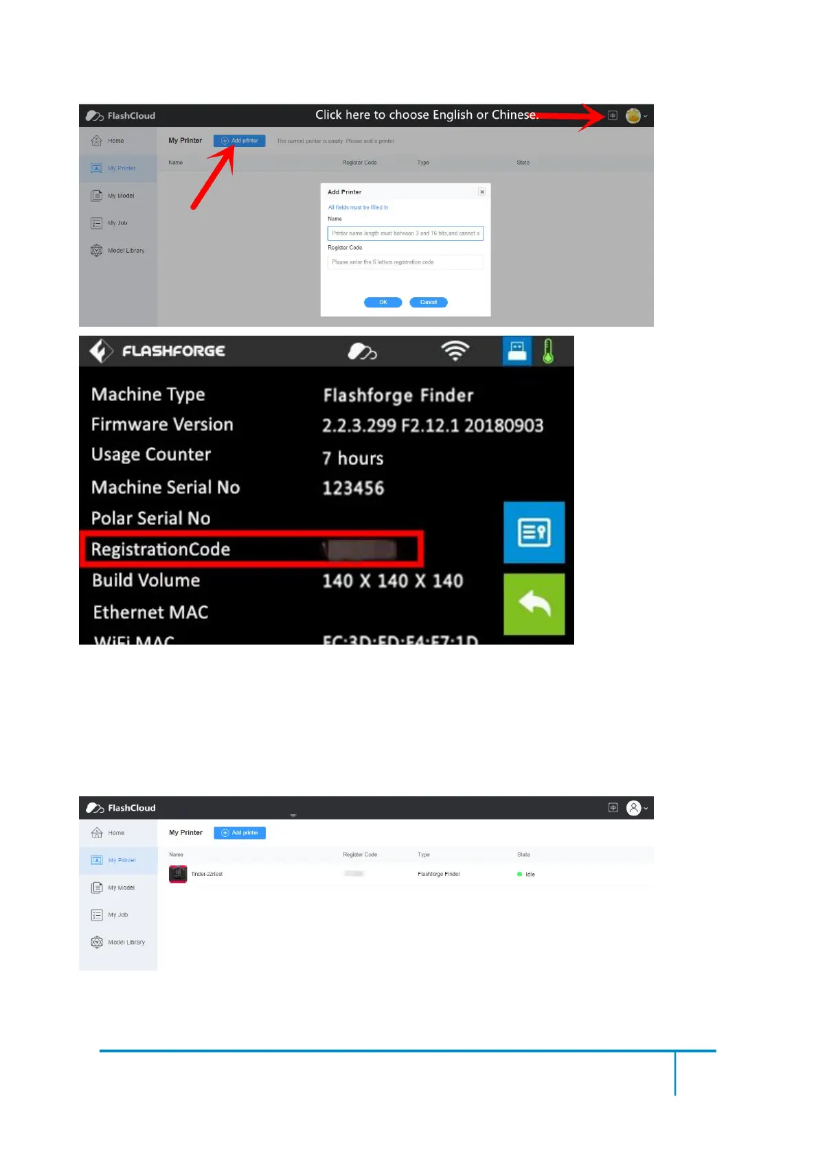 connection. Using FlashForge Cloud connection to print, printers and print jobs management can