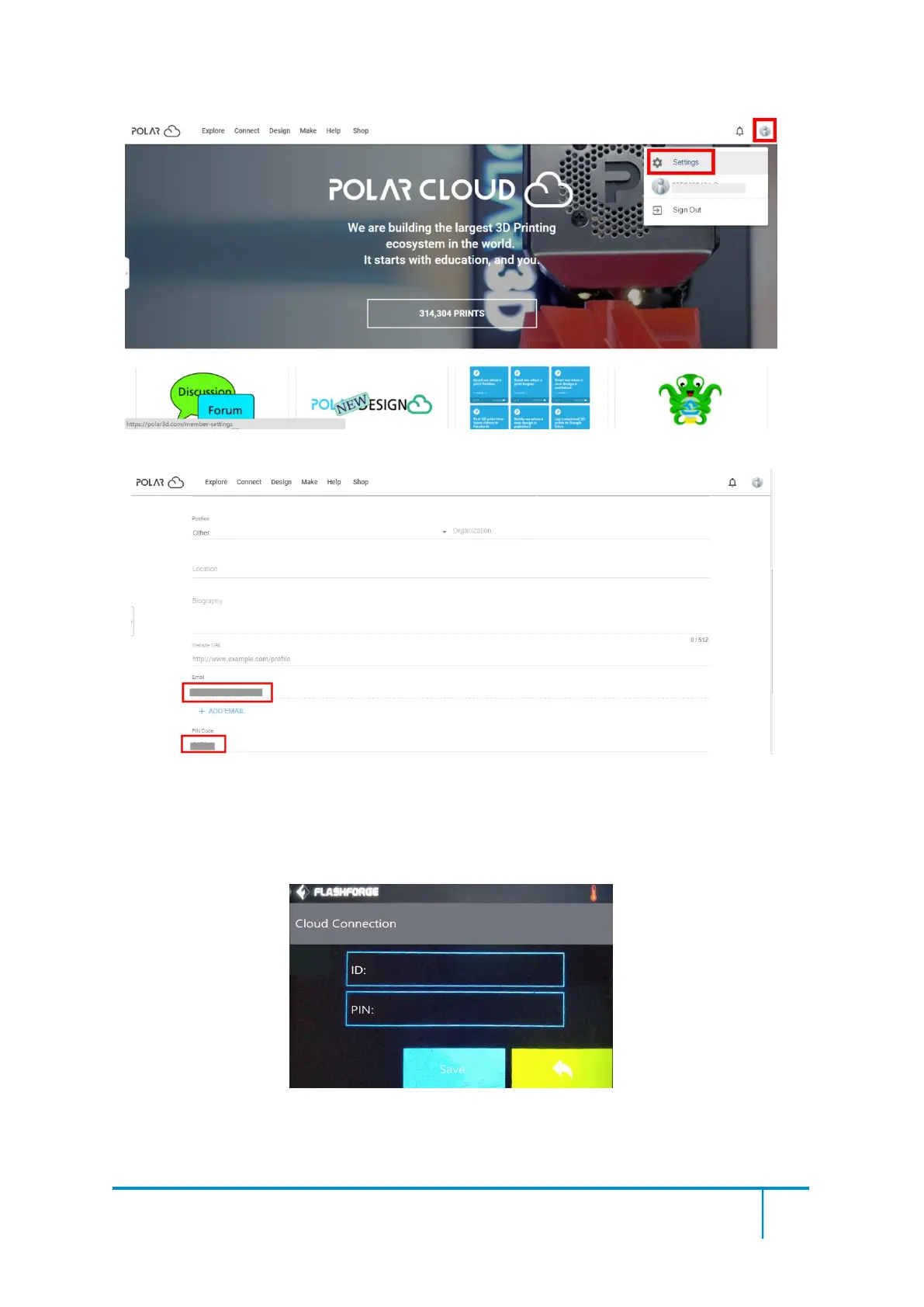 Input your polar 3D cloud account’s Email address(as ID) and PIN Code, Tap[save] .