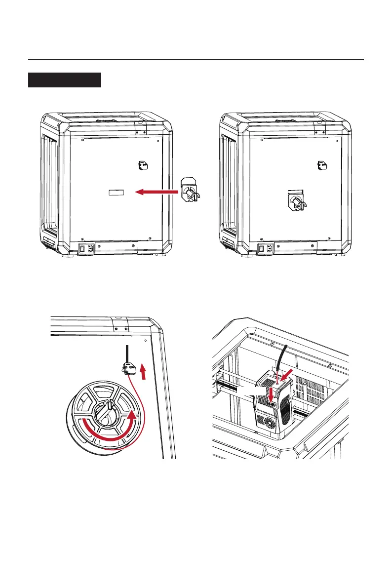 将丝盘固定轴安装于打印机背部的安装接口上。1.