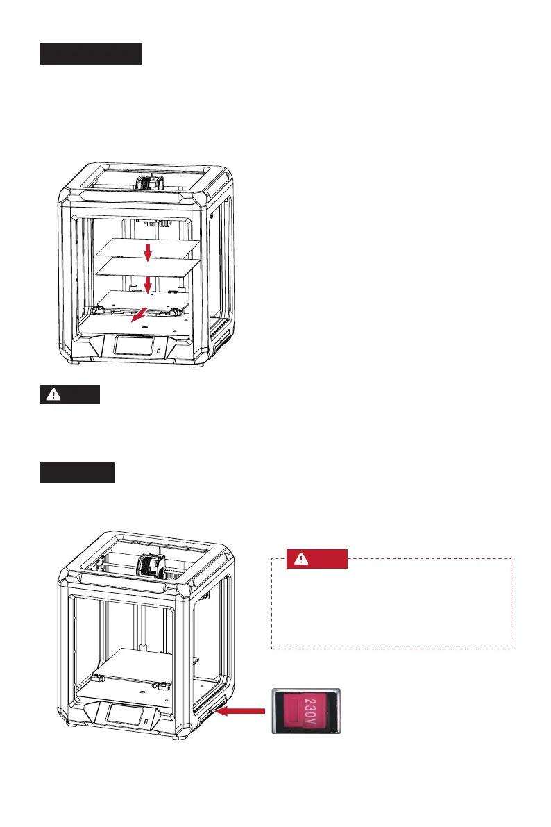 插上电源线,拨动开关打开电源。当机器通电时,请勿断开连接线。