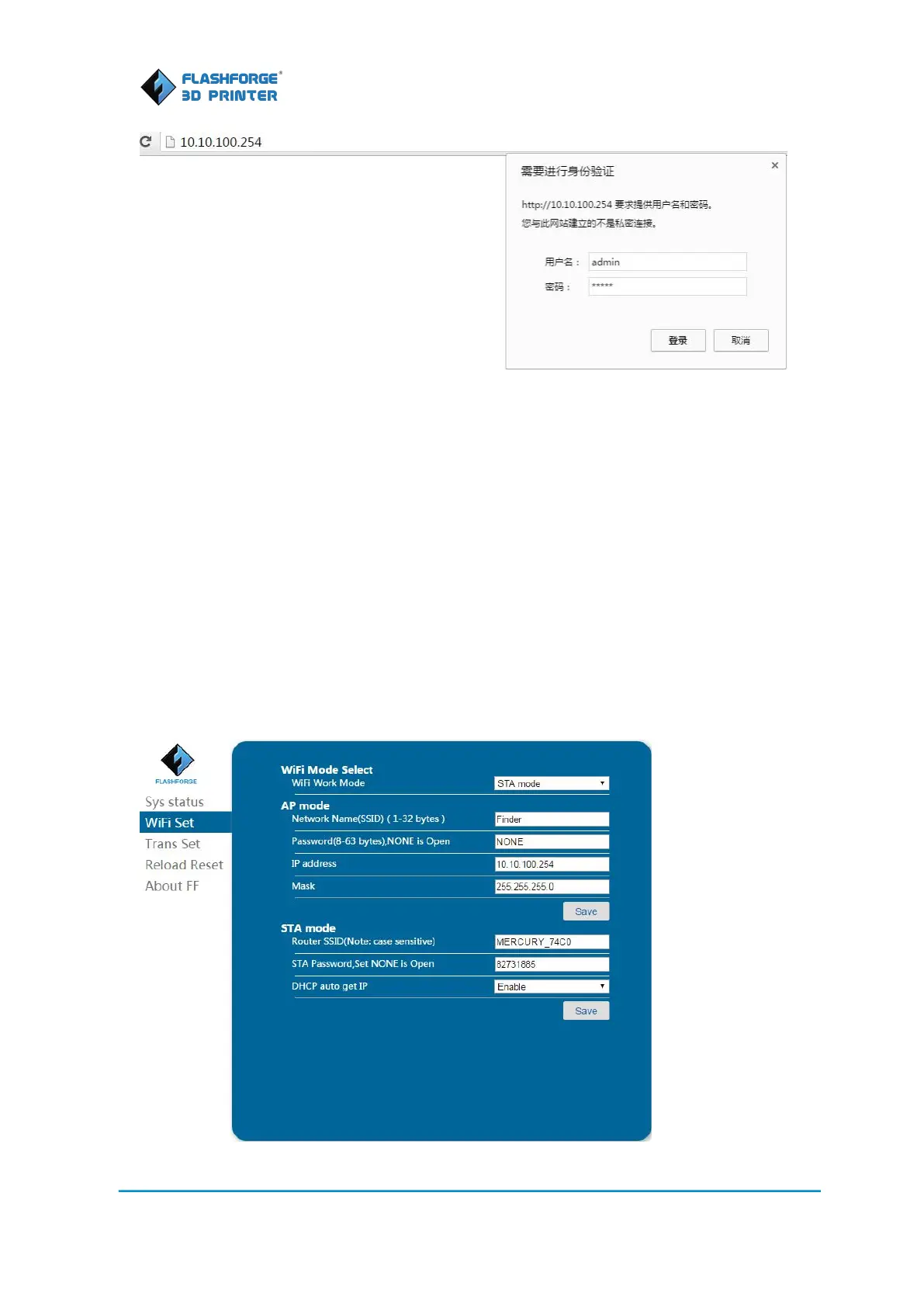 4. Click [WIFI Set], user can select AP or STA mode. When WIFI configuration is set up under STA