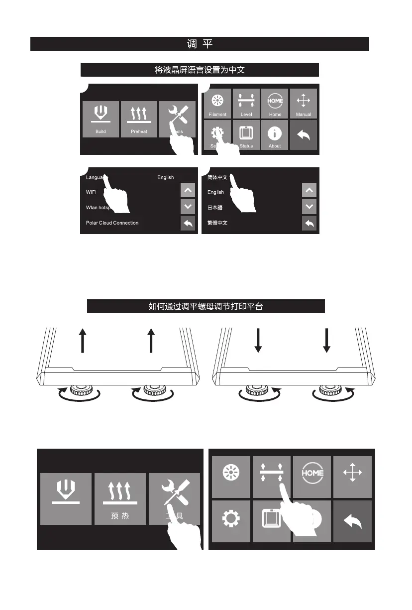 2. 语言设置完成后,点击返回键返回主界面,准备开始调平。在开始调平之前,让我们先了解一