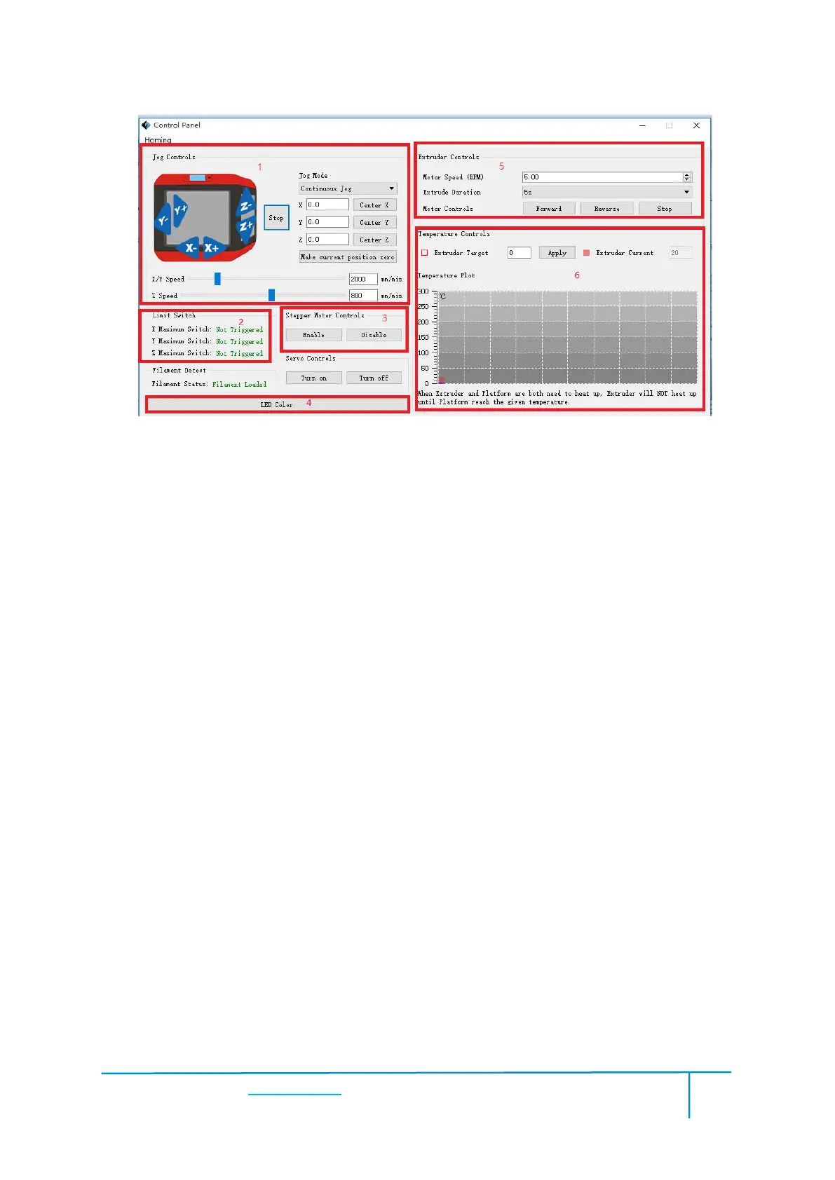 specified distance rightward. Click Y-, extruder will move forward a specified