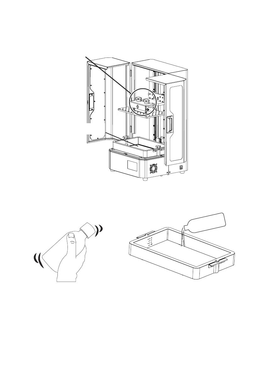 6. Shake the resin to mix itwell. 7. Pour the resin into the solution box. Note