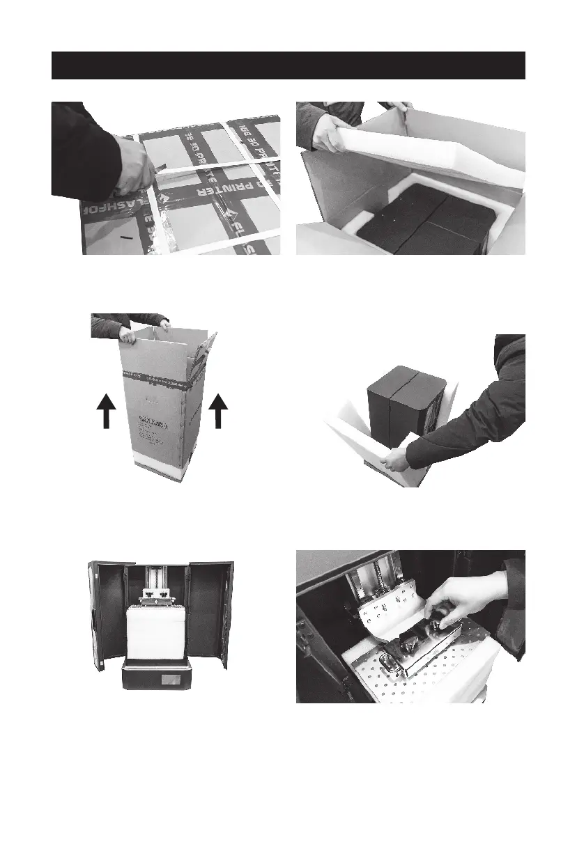 3. Lift up and remove the outer box. 4. Remove the foam on both sides.