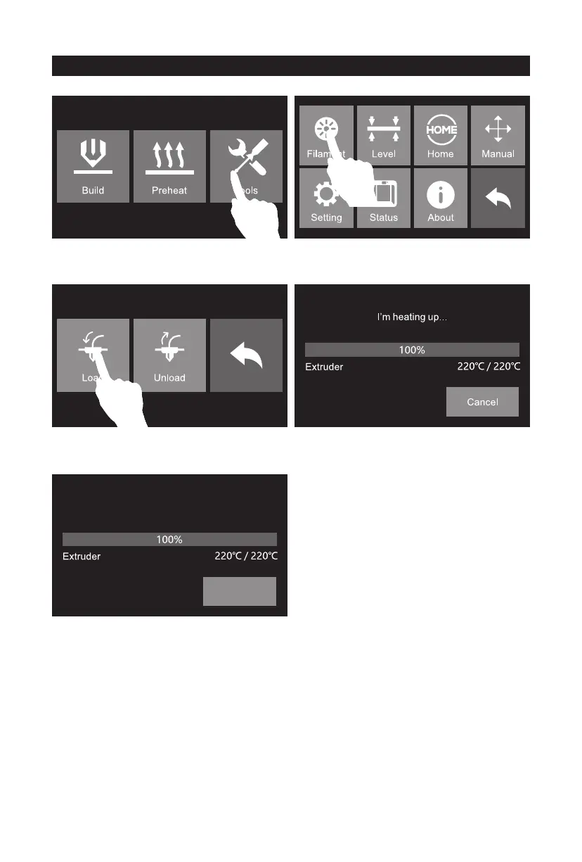 provides a steady flow of filament. Tap touch screen button, go back to home screen.