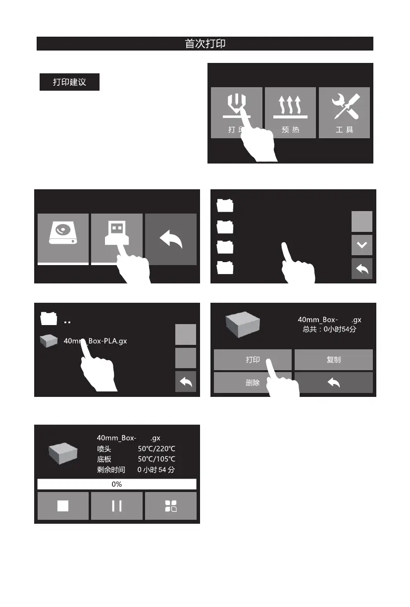 3. 喷头内可能残留少量耗材,请进丝一段时间,
